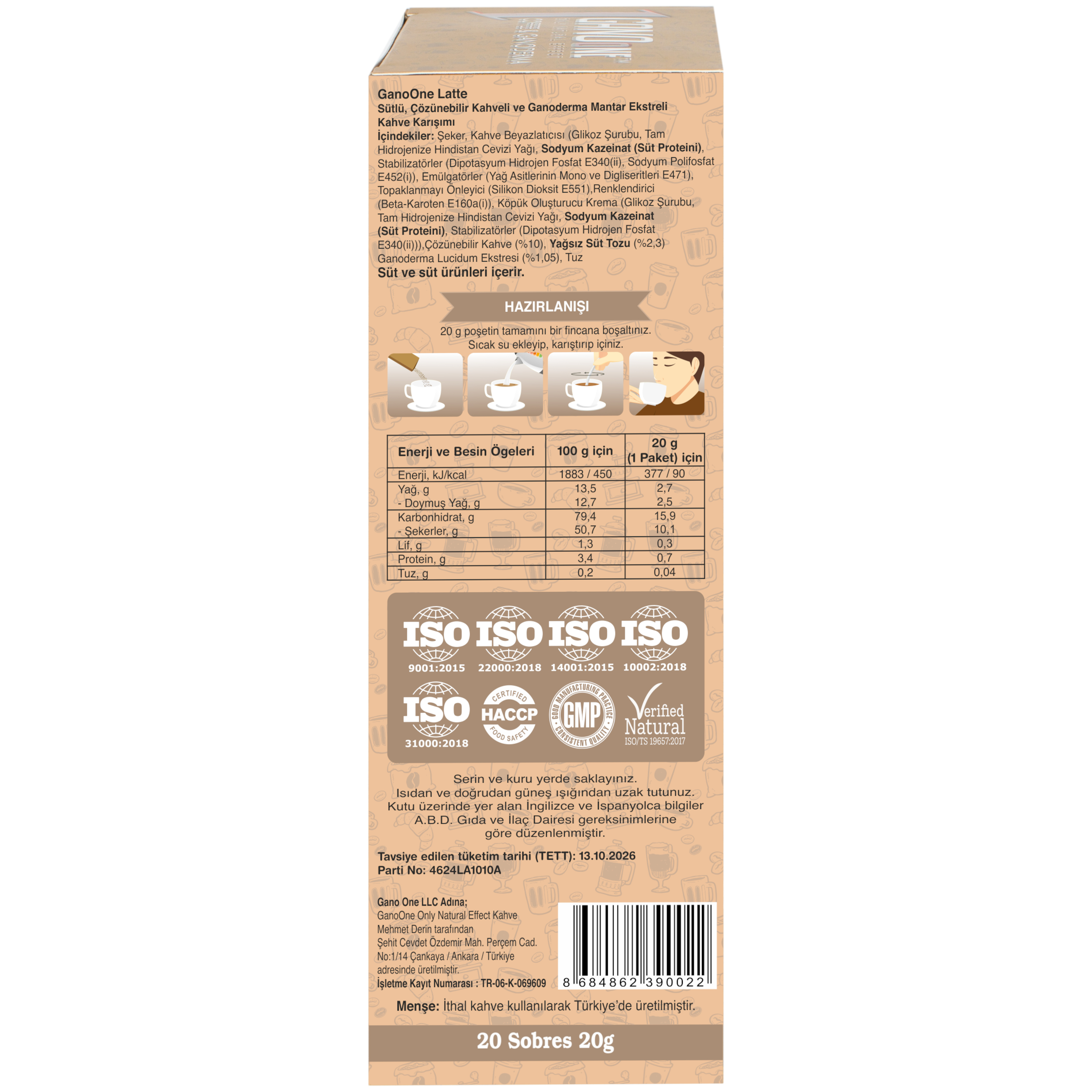GanoOne Latte kadifemsi yumuşak içimi ile sakinliğin tanımını yeniden yapıyor. Kahve ve sütün buluşmasını ganoderma ekstresi ile farklı bir boyuta taşıyoruz. Ganoone Latte ile koşturmacanın arasında sakin bir mola verin!